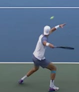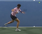If we now shift our attention to the Shelton forehand, we see that the American’s scissor-lift setup has the racquet and hitting hand comparably low (read: set at ball/contact height more quickly), but with the hitting elbow drawn much farther back.