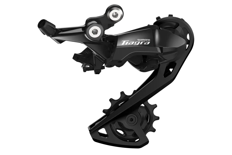 The Tiagra cassette is designed to work with a new rear derailleur, which updates the geometry to Shimano’s newer Shadow design with increased wrap around the chain and a single long cage in place of old Tiagra’s short and medium cage variants – again as per 105 mechanical. The derailleur has a 275g claimed weight and £64.99 UK price.