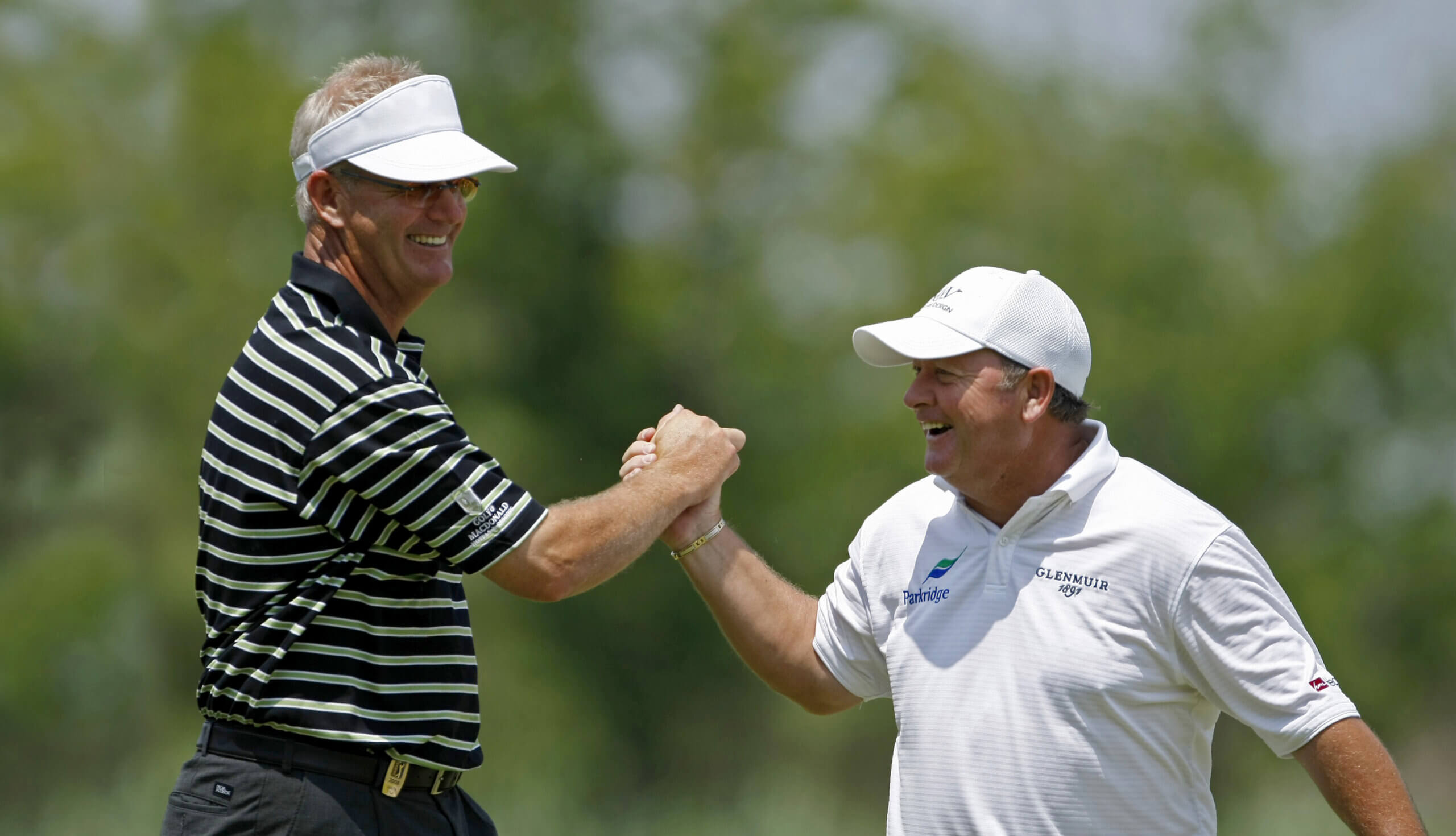 The next day he needed all the inspiration he could muster as he found himself tied with Mark Calcavecchia and stood in a fairway bunker on the final hole.