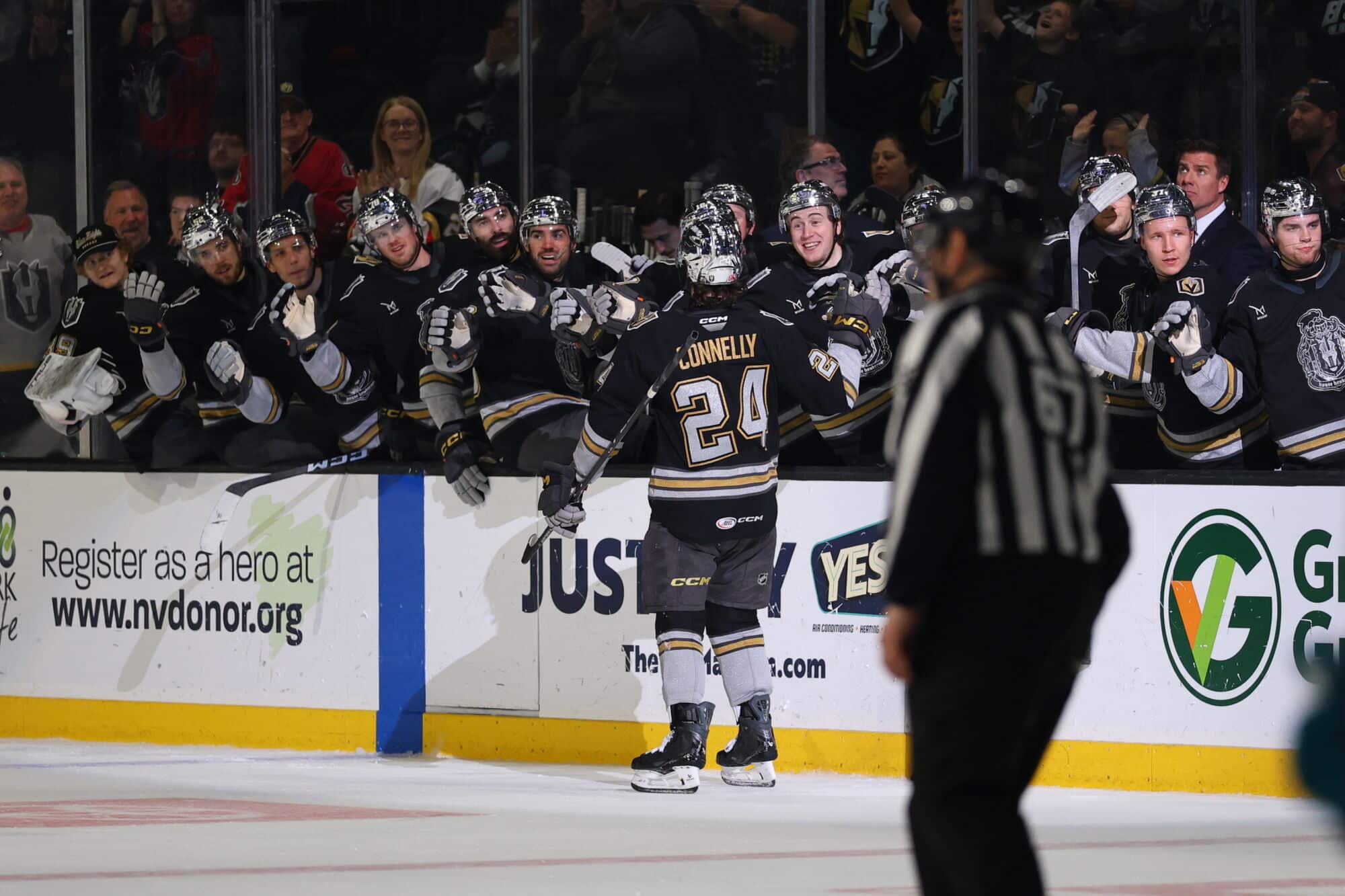 The score did not change through the second period. Trevor Connelly broke the silence with a power play goal nearly seven minutes into the third frame. Matyas Sapovaliv scored an empty netter and secured the 4-1 victory for Henderson.