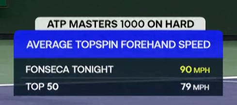 Ok maybe that’s too simplified, maybe it’s more like: if you’ve figured out how to create the kind of easy racquet-head speed Sinner and Alcaraz (and Fonseca) can generate all over the court, then you’ve earned the right to play on autopilot to a degree others simply can’t afford to. And if you find yourself playing someone of equal stretch ability (e.g., Sincaraz playstation points; this match) you’ll invariably find yourself playing tennis at a speed that is too fast for cerebral strategy: