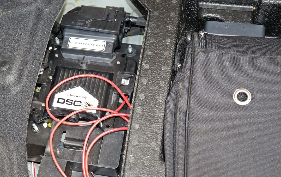 Per SCCA F Street rules, you can also swap in an aftermarket DSC sport shock controller. “They’re not inexpensive,” Sam warns. “They’re about $1400 to $1500. They’re complicated, too: You have to know something about shocks and computers. But there are certain things that controller, plug and play, does better. It rides better. It deals with sharp bumps better. There are certain things it doesn’t do so well, like with launch control, its settings are backwards, so we have to go in there and monkey with settings. But the sky’s the limit with the adjustability.”