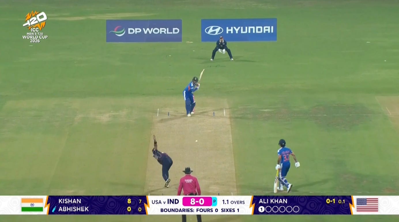This is wide and short against Abhishek Sharma, you should be picking concrete out of the ball when you give him this. But on this pitch, with the field set right, this ball stopped, and he bunted it up.