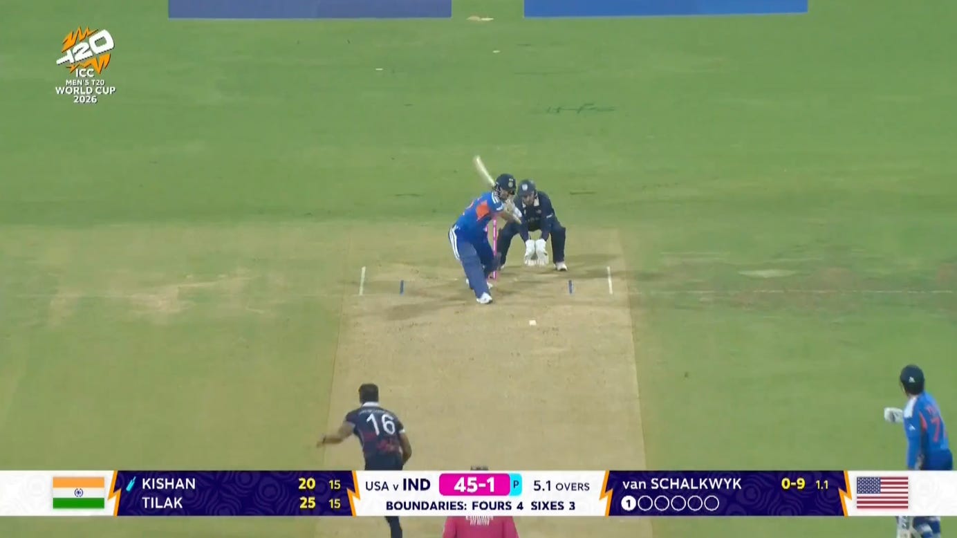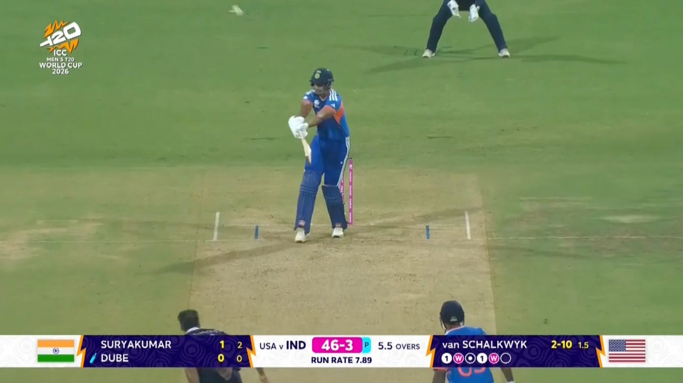 It wasn’t just the Indian batters; the USA lost their first three wickets to reaching wide for the ball or probing towards it. This was a surface where if you didn’t wait fort the ball to be close to you, trying to hit it hard meant a lofted ball to nowhere.