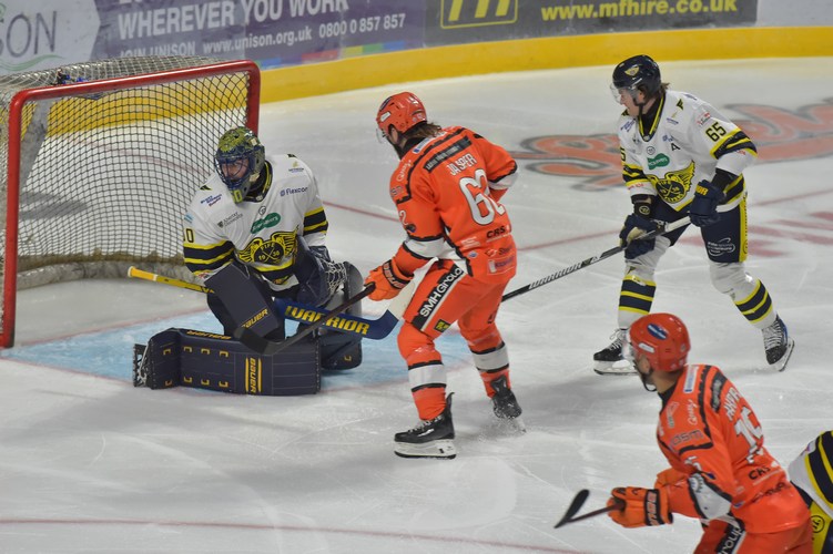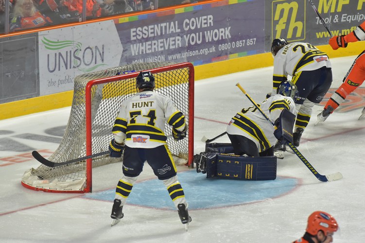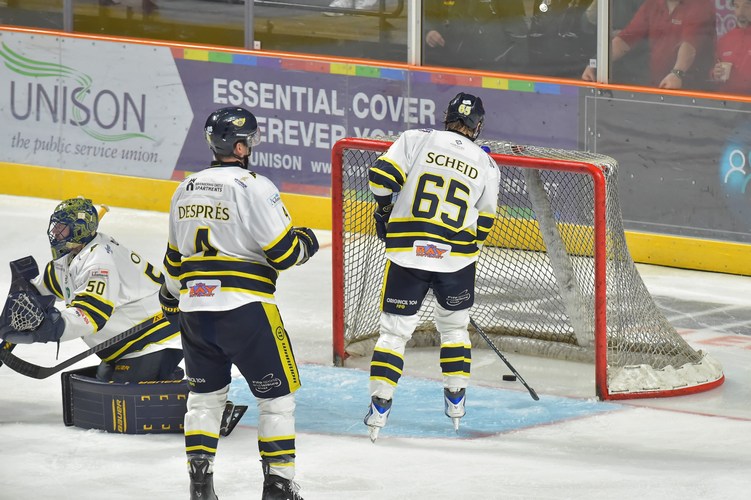 Sheffield showed no sign of easing off in the third period. Just over a minute in, Ryan Tait used his speed to get around Jeremy Masella before finishing into an empty net for the sixth of the afternoon. The seventh followed after an excellent shift from young Brit Ivan Bjorkly Nordstrom, who began the play by stealing the puck in his own zone before joining the rush and converting a backdoor pass from Heard.