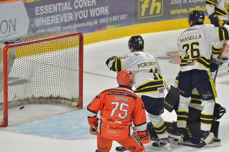 The Steelers opened the scoring just over five minutes into the first period when Stephen Harper fired a snap shot from the hash marks under the blocker of Shane Owen for the home side’s opener. The lead was doubled later in the frame as Brien Diffley finished off some strong work from Ryan Tait along the boards, forcing the puck into the slot and lifting his shot high past Owen.