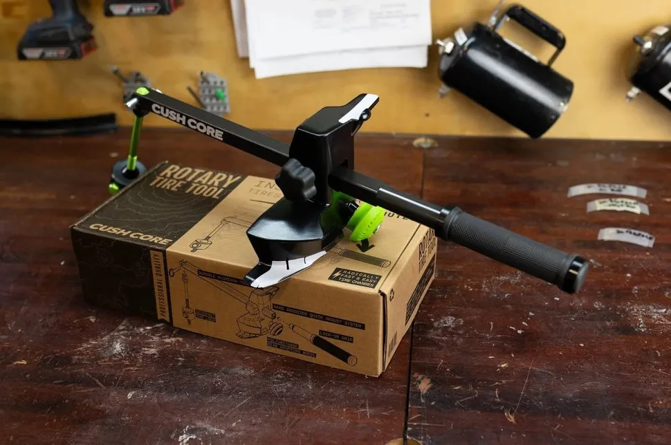 While tight tubeless tyres are reassuring and generally seal more easily once installed, getting them on rims can be a thumb-snapping, palm-shredding nightmare. To make that process dreamy, Cushcore has just released its Rotary Tire Tool, which promises to speed up the installation and removal of tyres and inserts.