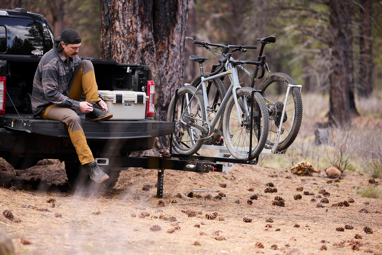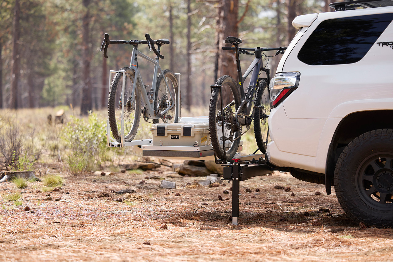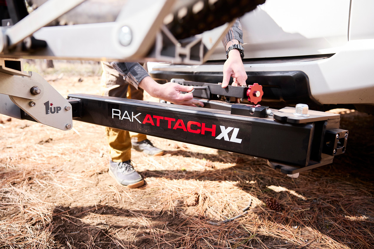 Available as a dedicated hitch extension, RakAttach XL can accommodate either bike racks, cargo racks, or a combination of both (up to 375 lbs).