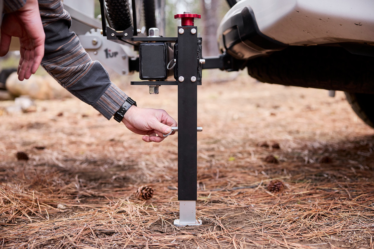 The wedge-style anti-wobble hitch secures the rack to your vehicle with rock-solid stability, virtually eliminating sway and rattle on your 2” hitch receiver, while the included support jack provides the necessary stability for the added weight capacity and stores effortlessly.