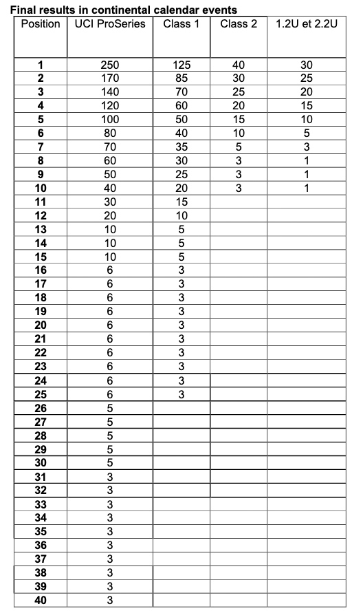 Anyway this blog post is just to put the UCI points scales all on one page for handy reference during the year. So if you want something to read today… try something else.