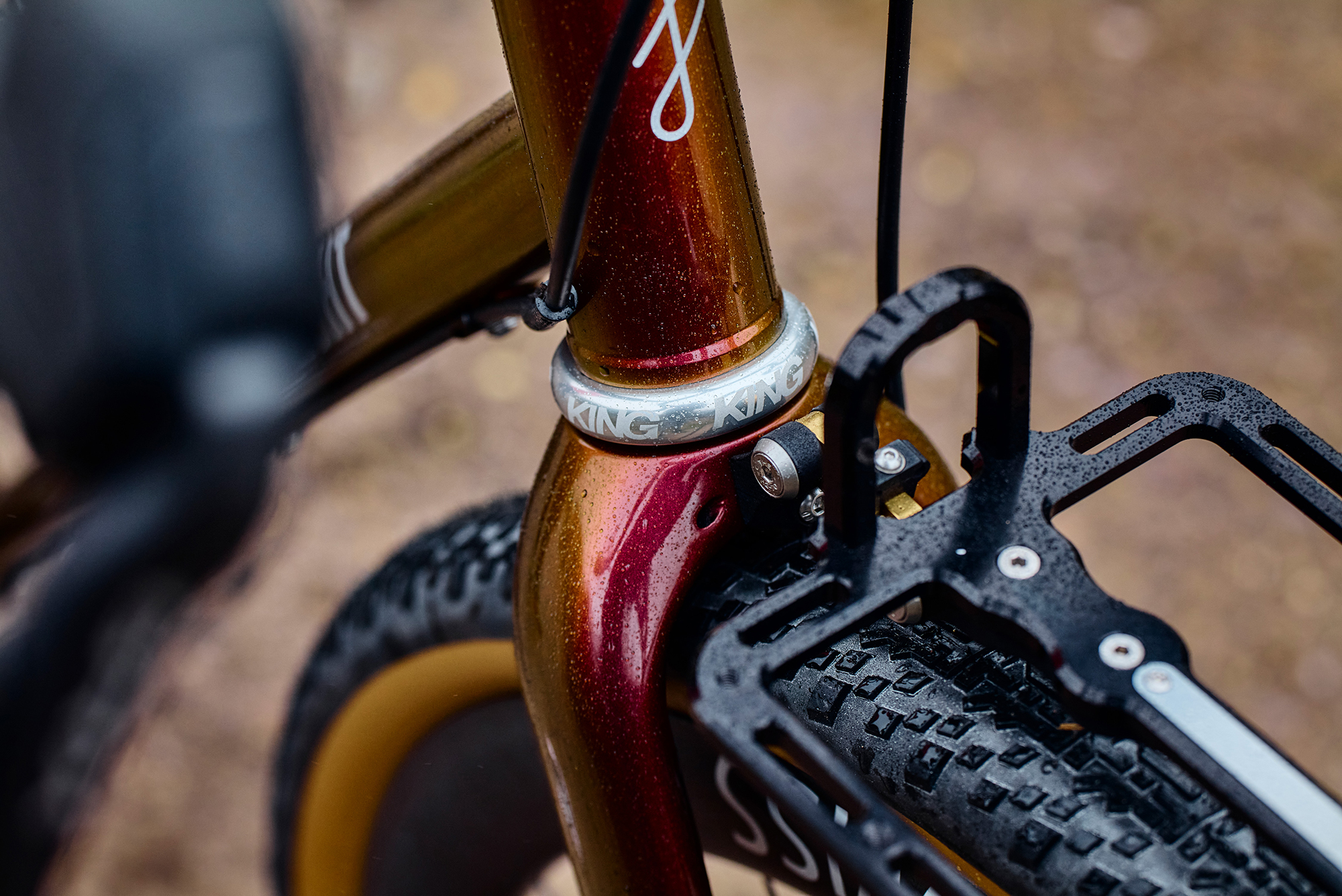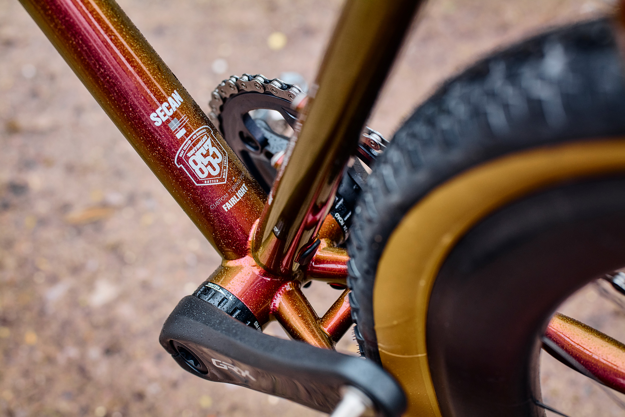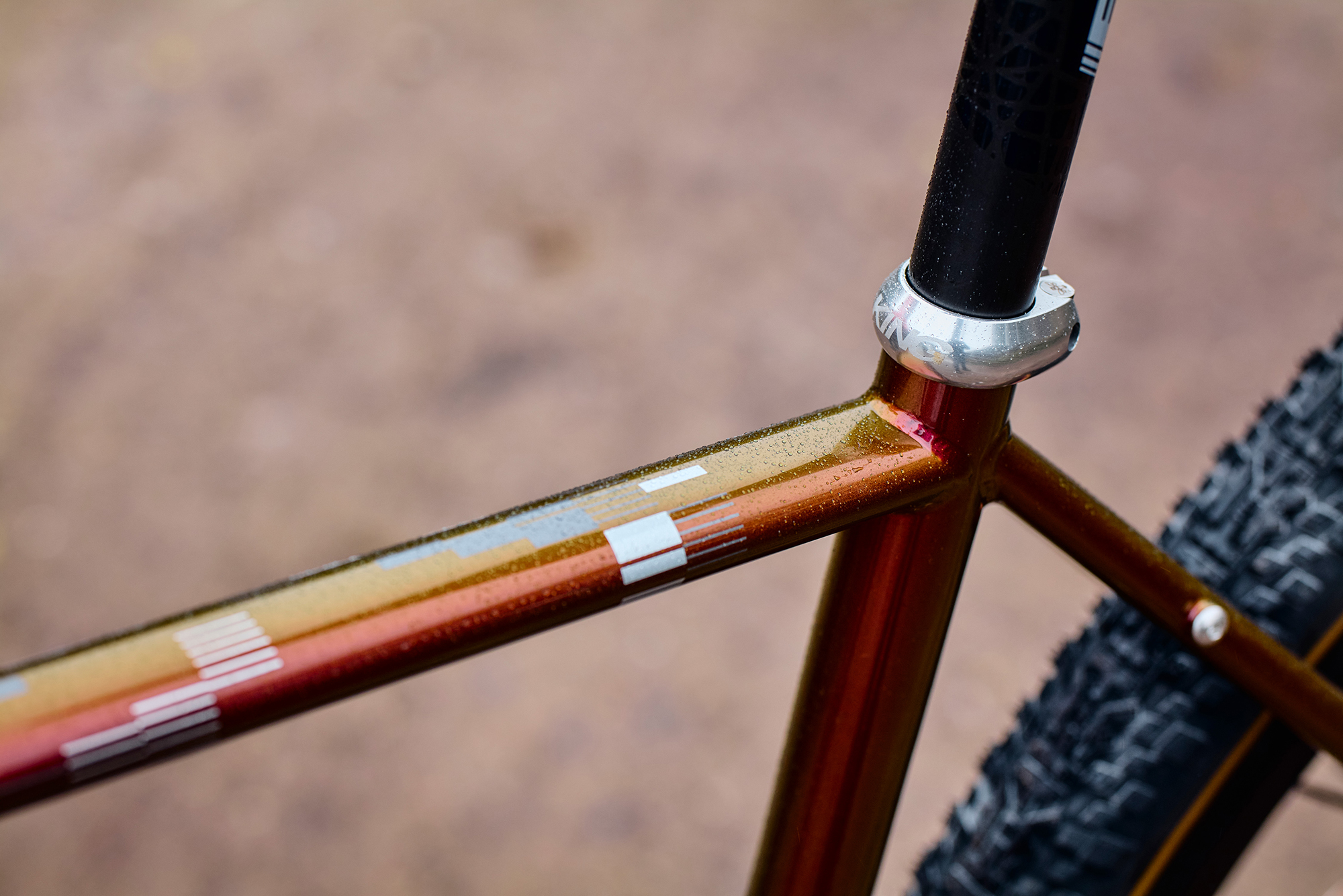 This isn’t your standard mixed-in-a-can root beer paint, popularized in the 1990s by Italian framebuilders. This comes from the hot rod world and is an extremely high-end paint and application process. The final product includes a staggering 10 layers of hand-sprayed wet paint.
