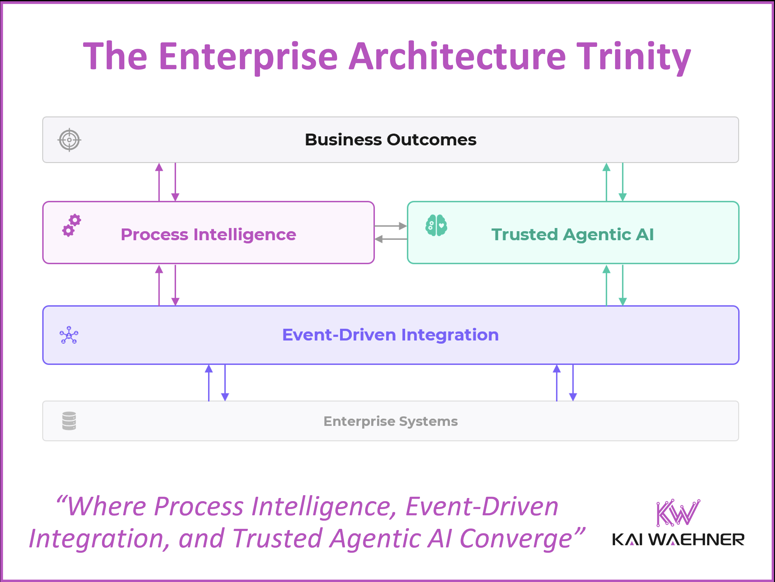 Most enterprises have all three pieces. A process automation layer. A data integration strategy. An AI initiative. Yet critical decisions still fail, agents still hallucinate, and workflows still run on yesterday’s data. The investments exist. The convergence does not. The problem is not a lack of technology. It is a lack of architectural thinking. Process intelligence, event-driven integration, and trusted agentic AI are being built in isolation, by different teams, with different goals, on different timelines. The result is an architecture that looks complete on a slide and breaks in production. This post argues that these three capabilities form a Trinity. They only deliver their full value when they are designed to work together.