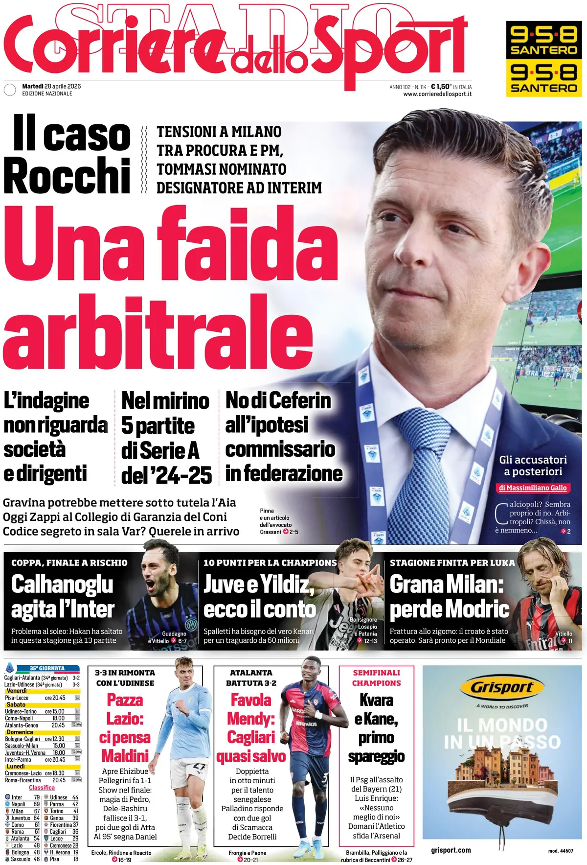 Besides Rocchi, Gervasoni, Di Vuolo, Nasca and Paterna, others are under investigation, but not Inter nor their directors. New duty for the Prosecutor, Ascione, and tension within the Prosecutor’s office. Secret codes in the VAR room. Tommasi is the temporary designator. Today, CONI will discuss the Zappi case, the AIA President banned for 13 months. In the meantime, Gravina raises his voice against the commissioner: ‘It violates the principle of autonomy protected by CIO; FIFA and UEFA.’
