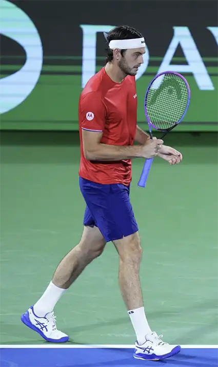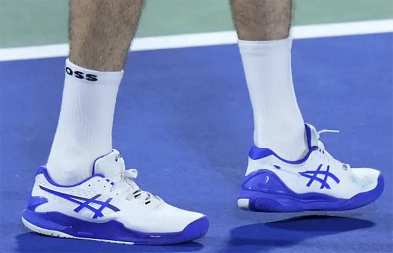 Taylor Fritz continues to wear the Asics Gel Resolution 9, even though most of the Asics sponsored athletes that choose the Gel Resolution line are wearing the 10th edition, which offers more stability due to the extended Dynawall technology in the medial side. However, Fritz clearly feels the GR9 gives him everything he needs.