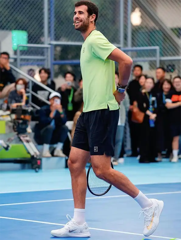 Karen Khachanov continues to wear the Nike Vapor Pro 2. A show that sits low to the ground giving him a connected, responsive feel. The forefoot Zoom Air unit helps with explosive first steps, the mesh upper keeps things breathable but supportive, and the herringbone outsole balances grip and slide. He’s been spotted wearing the Vapor Pro 3 at the Nike Court Just Do It event in Beijing this year, but in matches he sticks with the Vapor 2.
