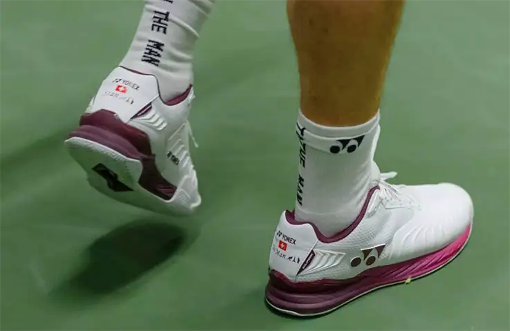 Wawrinka is a perfect example of a player who rarely changes his equipment. To start, he still uses the Yonex VCORE 95D, a racquet released nearly 15 years ago. The same thinking applies to his shoes. Stan the Man wears the Yonex Eclipsion 4, a model that has been around for a few years now. It is built for stability and durability, not flash. The shoe offers a wide base, strong lateral support, and a secure lockdown. The Eclipsion 4 is a safe and reliable option especially for a player in his 40s who is still competing at the top level.