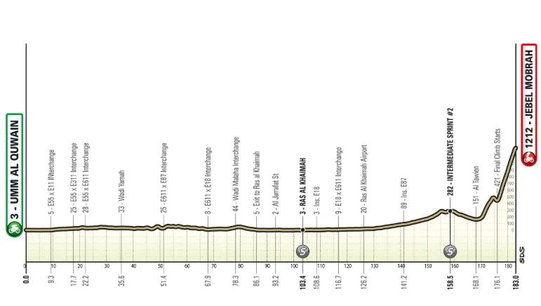 Stage 3, Wednesday 18th February: Umm Al Quwain – Jebel Mobrah, 183km