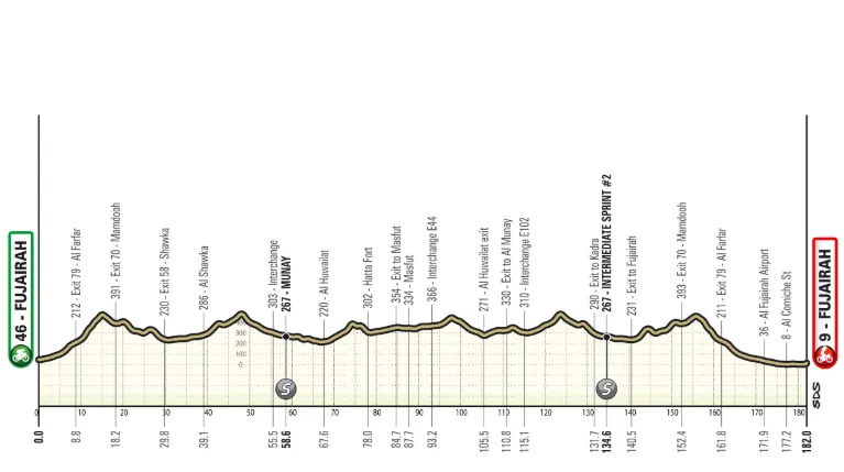 Stage 4 begins on the coast in Fujairah, heading inland for a loop around Masfut. Then it’s back to where they started for what should be another sprint opportunity.