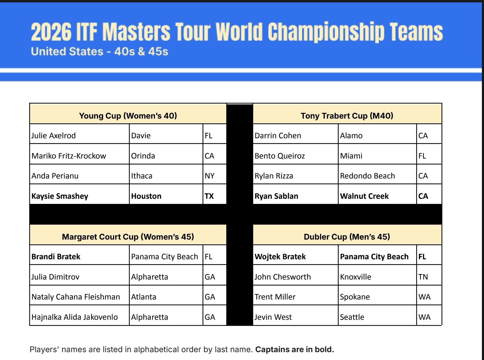 Congratulations to these players who will represent the USA in Portugal in August. See the fact sheet information below the list of players.