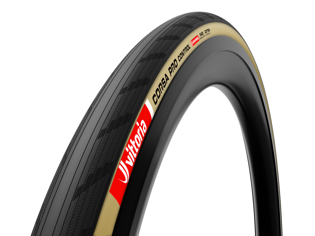 This extension responds to a clear market evolution: modern road, endurance, and gravel-race bikes feature increased tyre clearance and are aerodynamically optimized to perform best with wider tyres. Corsa PRO Control is part of Vittoria’s Corsa PRO road tyre family, the brand’s top-of-the-range road offering, where all models share a supple 320 TPI cotton casing. Within the range, Corsa PRO