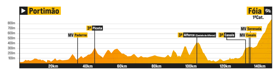 The second stage starts along the coast in Portimão, known for its motorsport track. The first two-thirds of the stage are largely undulating, with a few categorised bumps along the way. After passing through a quick succession of intermediate sprints in Casais and Serenada, the riders will face the Alto de Fóia (8.8km at 6.2%). Used in every edition of the Volta ao Algarve since 2017, the peak has crowned Tadej Pogačar and Remco Evenepoel in the past. Last year, UAE Team Emirates XRG’s Jan Christen took the stage honours atop Fóia.