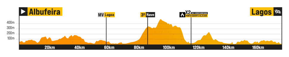 We head to the holiday town of Albufeira for the start of Stage 4. The route wraps around the western part of the region, with another golden kilometre on offer at Alzejur, the race’s most westerly point. From there, the race returns to the southern coast for an expected sprint in Lagos, a frequent host city for the Volta ao Algarve.