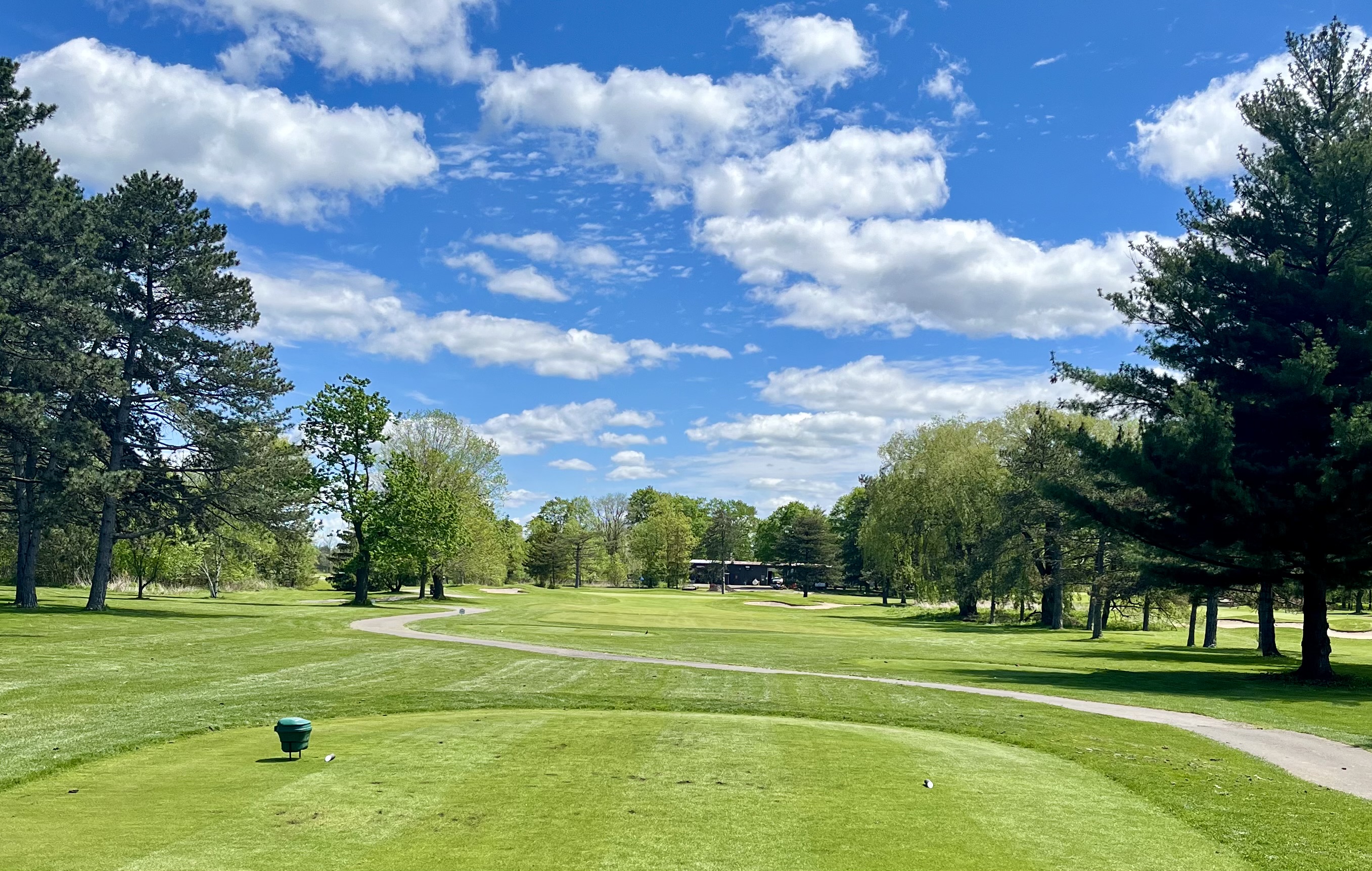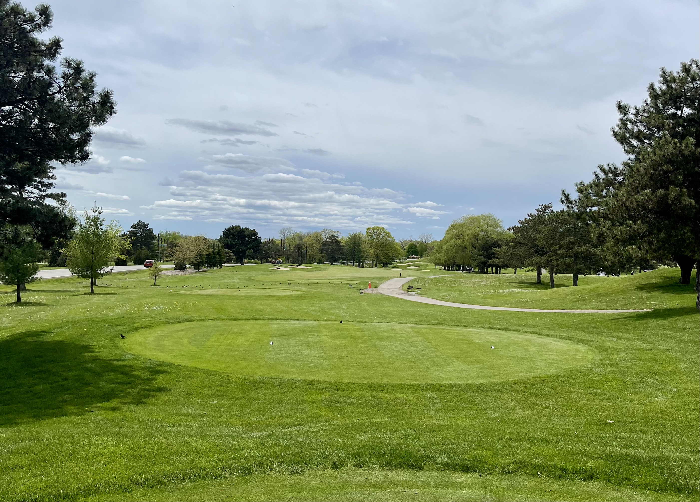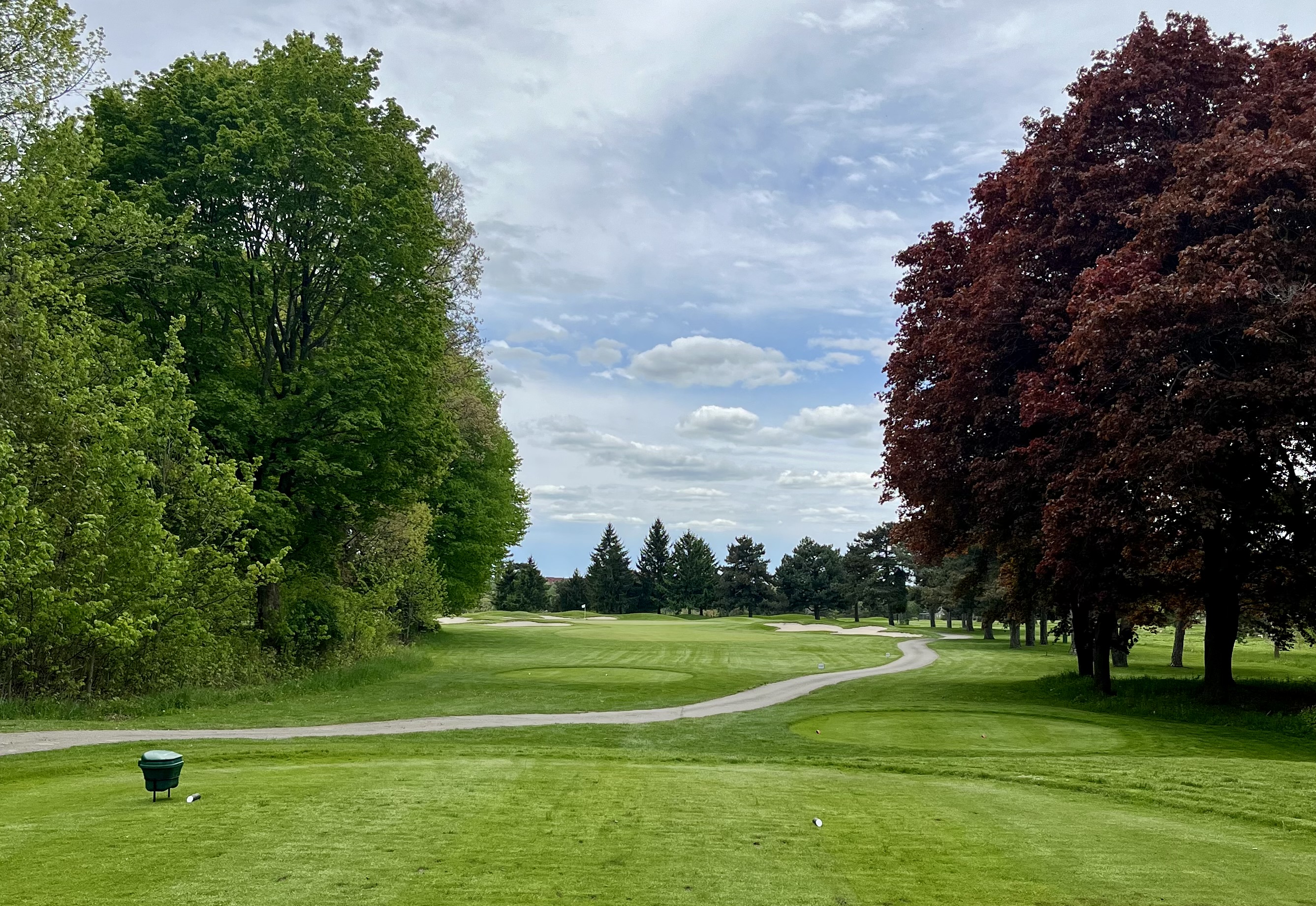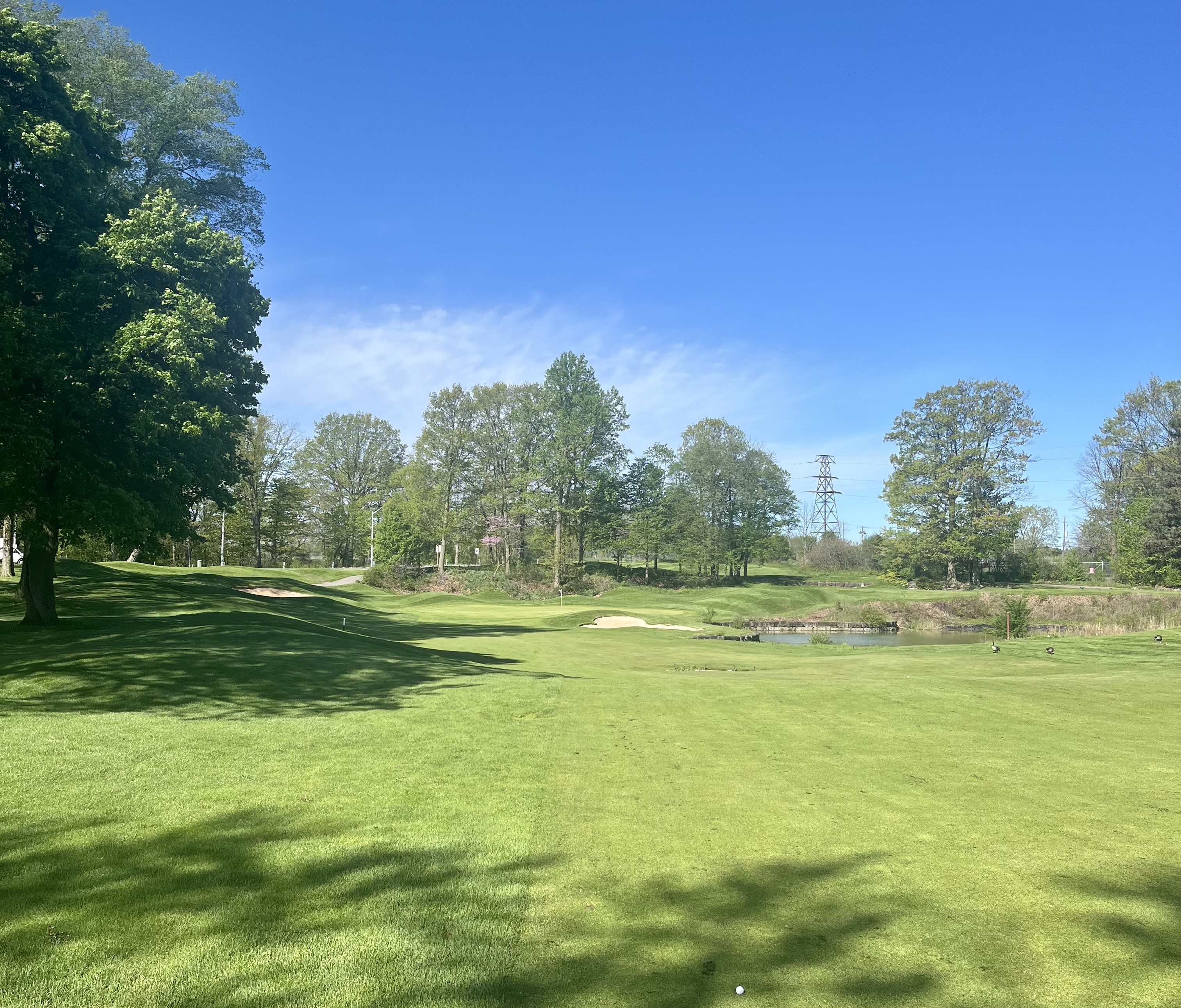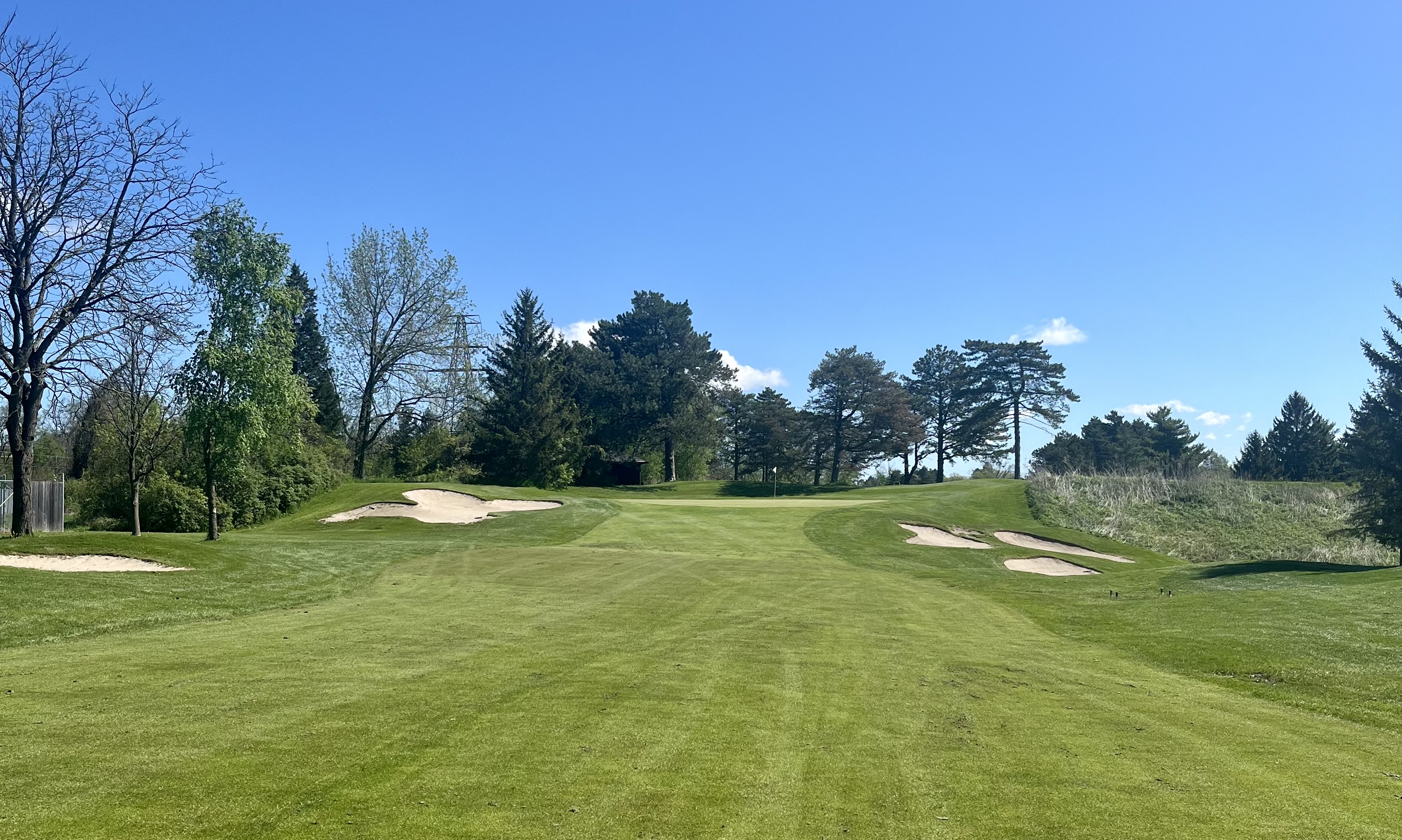 Whirlpool closes in epic fashion, with a risk/reward 495 yard par 5 that’s simply a blast. With the Niagara River and U.S. border just a few hundred yards to your left, this hole runs downhill on the teeshot with OB and a road to your left the entire way, bunkers down the left between 190 and 230 yards, and a pair of bunkers on the right beginning at 265 yards. Potentially reachable in two, this fairway then trundles into a valley with trees and strategic crossbunkers on either side in the lay-up area. This back-to-front sloped green sits perched on a pedestal and is extremely well-defended with four bunkers long and another short.