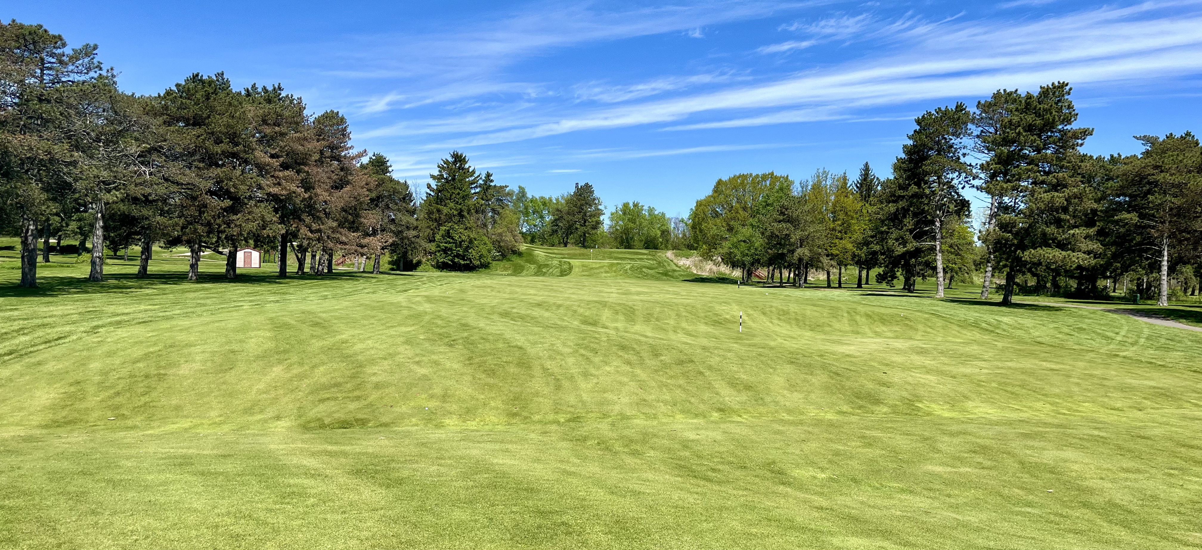 Two of the most challenging holes at Whirlpool come at the 7th and 8th, two straightaway but lengthy par fours that run parallel to each other. The 7th is probably the easier of the two, playing shorter at 416 yards to a tight, tree-lined fairway. This back-to-front sloped green is open up front but defended by three bunkers long. The 434 yard 8th hole is another tight hole, playing through a chute of trees to a skinny, tree-lined fairway. The fairway narrows even further as you near this large, elevated green with bunkers short.
