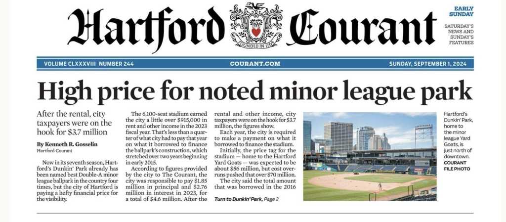 Why is nobody asking the owner to pay for these upgrades? Why are the local media not outright demanding, if not just asking, this basic question? Sports owners have simply gotten used to receiving every dollar of revenue and paying almost nothing for expenses. The owners of one minor league team admitted in a lawsuit that the city they played in had “an unlimited obligation to cover the cost of the stadium”. That is how sports owners look at their cities, with very few exceptions. I love my local sports teams and have gone to many games over the years. But that still doesn’t stop me from understanding that sports venues do not provide a single dollar of actual economic impact or development for cities/states. It has been shown through every non-bias study done over the last 20 years. The Carolina Journal wrote an article titled, “Towns are pushing for subsidized stadiums, while others struggle to keep them afloat”. This is happening around the country.