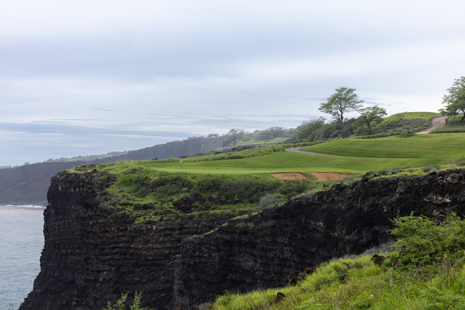 This is the hole everyone knows, the cliffside par 3 that defines Manele. And even with all the photos out there, it doesn’t fully hit you until you walk back to the tee and look out over the ocean.