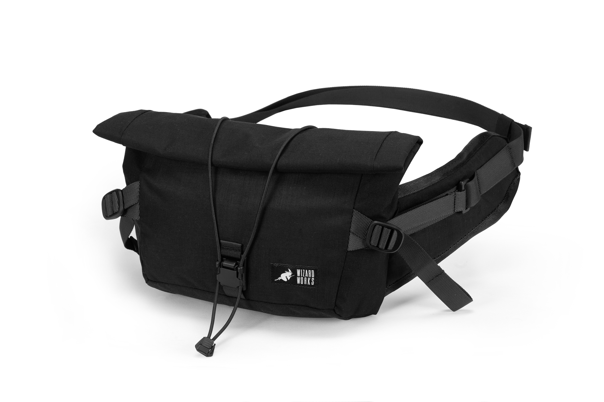 Recognizing that not all customers require bar bag functionality, Wizard Works offers the bar bag conversion kit as an optional add-on, allowing customers to purchase only the features they need. For bar bag mode, the hip pack wings tuck discreetly into the back panel, and the bag attaches to the bars via daisy chain webbing on the rear.