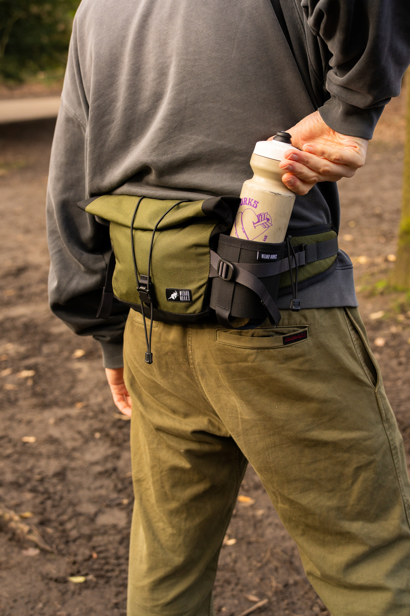 Available in 3 stock colours, Black, Olive and Tan, or made to order in your choice of materials, the Snagla Hip Pack + Bar Bag is available from Wizard Works and selected dealers today.