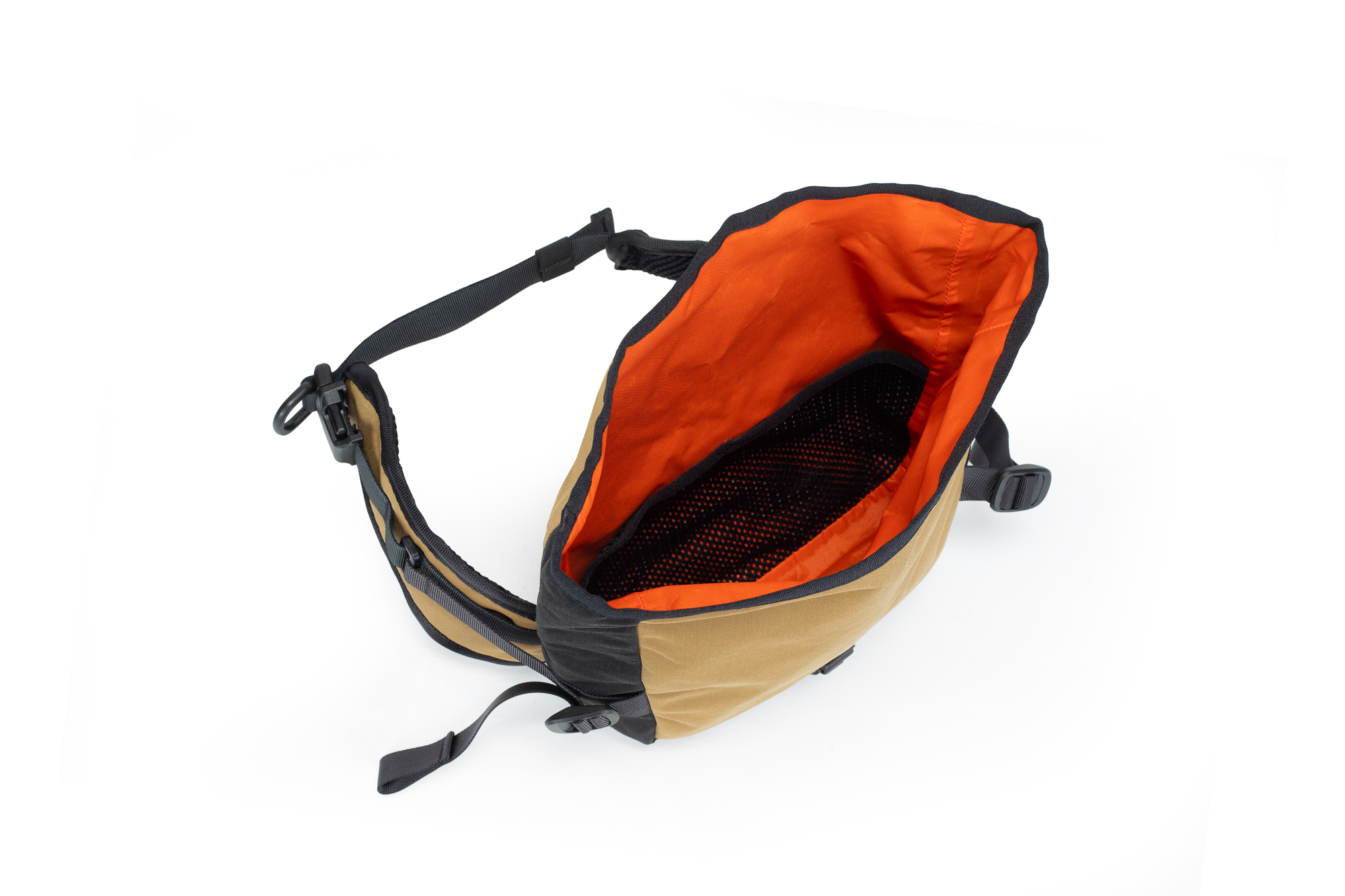 The roll-top closure offers expandable storage, and a quick-attaching Fidlock Hook Buckle ensures secure, one-handed operation. Snagla includes a floating, seam-taped liner that provides waterproof protection, and two interior mesh drop pocket helps organize smaller items. With the 3.5L capacity Snagla provides ample storage for all day adventuring.