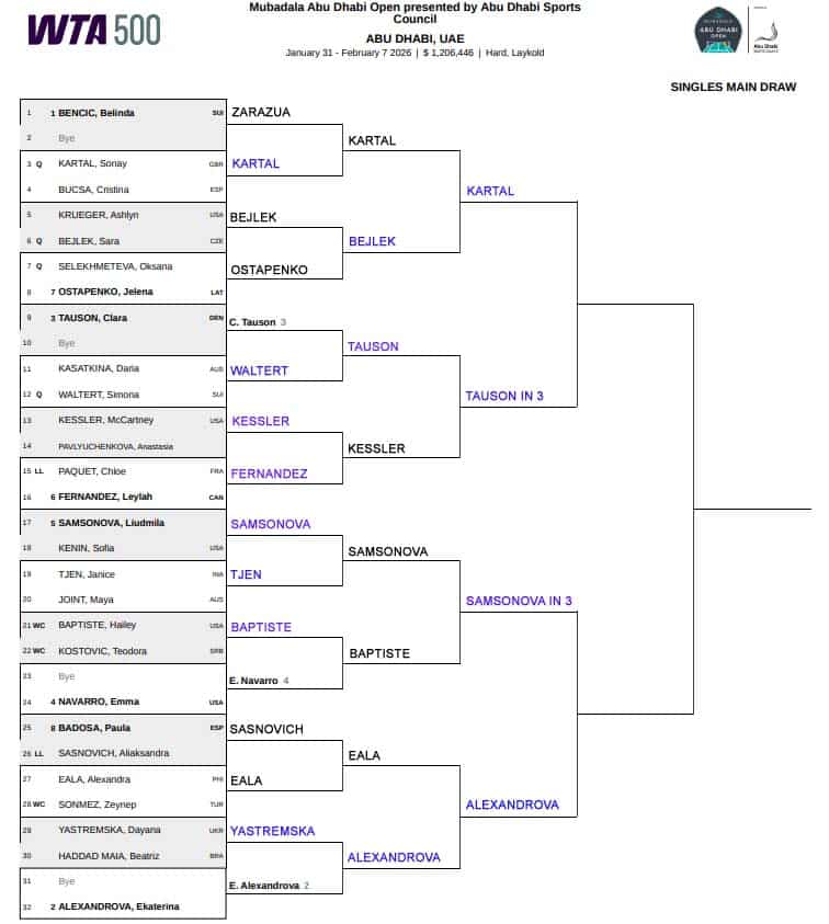 WTA Abu Dhabi, Quarter Final Predictions