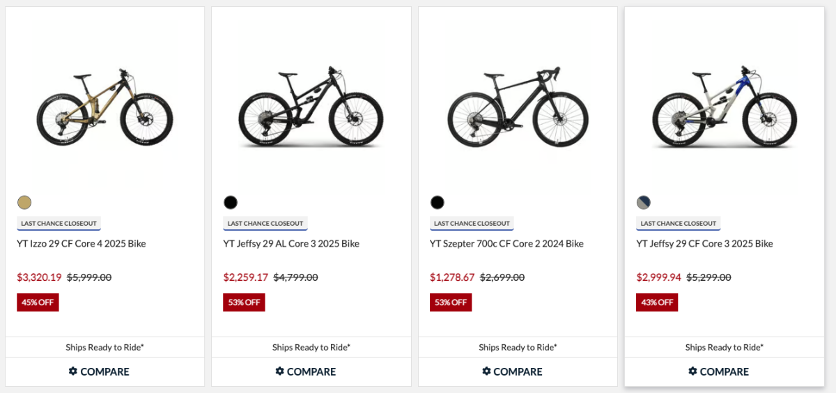 Then came the Jenson USA chapter with YT bikes being cleared out at deep discounts, some 40-50% off, which sounds great until you read the fine print. Those listings came with a disclaimer in bold red text, making it crystal clear that neither Jenson USA nor YT Industries would cover warranty claims for those frames. For a brand that had already taken a lashing in the Pinkbike comments over warranty and service issues, it was not a great look.